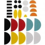29 čvrstih lesenih koščkov različnih oblik in barv podpira ustvarjalnost, prepoznavanje oblik in urjenje fine motorike.