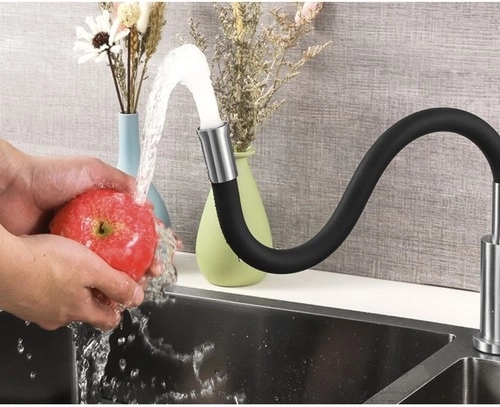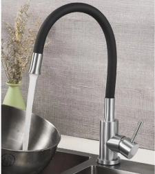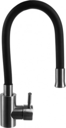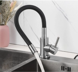 Ta dizajnerska armatura združuje prilagodljivost in trpežnost za vsakodnevno uporabo v kuhinji. Elastična cev drži nastavljeno obliko, omogoča natančno usmerjanje vodnega curka in z 360° vrtljivim vratom zlahka dosežete vse kote korita. Satenasto nerjaveče jeklo in kakovosten silikon sta odporna na madeže, razbarvanje in visoke temperature.