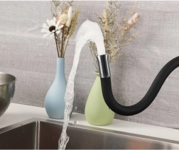 Elastična, oblikovalna pipa omogoča usmerjanje curka natančno tja, kjer ga potrebujete – od izpiranja zelenjave do polnjenja visokih posod. Idealna tudi za korita, nameščena pod oknom.
