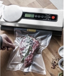 Ta zmogljiv vakuumski varilec združuje ohranjanje svežine, prihranek prostora in manj zavržene hrane. Zahvaljujoč podtlaku -80 kPa zaščiti meso, ribe, sire, sadje in zelenjavo pred vlago, bakterijskimi procesi ter mešanjem vonjav v hladilniku. Integrirana digitalna tehtnica z natančnostjo 1 g olajša porcioniranje pred pakiranjem.