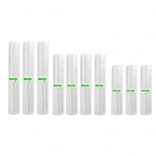 Takoj pripravljen za uporabo: 9 rolic folije, 5 velikih vrečk, cevka za izsesavanje, zamašek za steklenice in praktičen rezalnik.