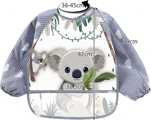 Iščete slinček, ki zlahka obvlada vsakodnevni nered pri mizi in med risanjem? Ta lahek in trpežen slinček KRUZZEL z ljubkim motivom koale nudi celovito zaščito pred madeži in tekočinami. Dolgi rokavi iz vodoodpornega materiala Oxford in elastične manšete ohranjajo otrokove roke suhe in čiste.