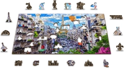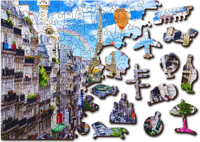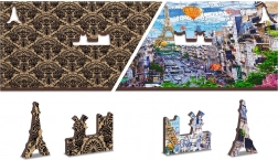Lesene sestavljanke Hrupen Pariz od WOODEN CITY so edinstvene zaradi obojestranske konstrukcije in posebej oblikovanih kosov, ki pri sestavljanju oživijo celotno sceno. Sestavljanje je zahtevnejše zaradi različno oblikovanih kosov, a hkrati zabavnejše. Predstavlja izziv tudi za izkušene navdušence nad sestavljanjem.