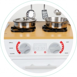 Otroci radi posnemajo odrasle in s to kuhinjico lahko postanejo pravi kuharski mojstri. Vklapljanje in obračanje gumbov za uravnavanje temperature jim ponuja avtentično izkušnjo kuhanja.
