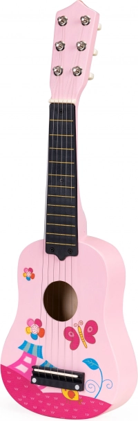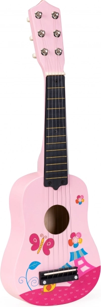 Lesena kitara za otroke znamke ECOTOYS je namenjena otrokom od 3 let dalje. Zaradi uglašenih strun se otroci lahko naučijo igranja enostavnih in zahtevnejših pesmi, in cela družina lahko skupaj nastopa v domačem okolju. Igranje na kitaro pomaga razvijati domišljijo, fino motoriko in smisel za ritem.