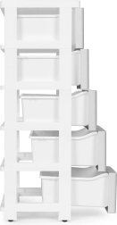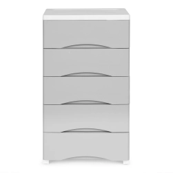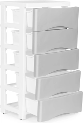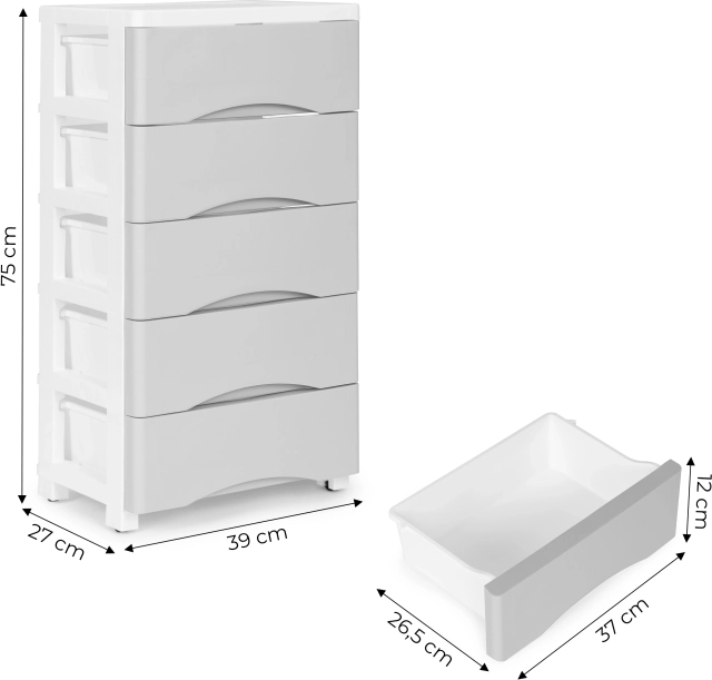 Ta premična predalna omarica v univerzalni kombinaciji bele in sive barve prinese red v vaš vsakdan. Odlična je za kopalnico za kozmetiko in drogerijo, za otroško sobo za igrače in kocke ali za delovno sobo za pisarniške potrebščine. Pet globokih predalov nudi dovolj prostora, ergonomski čelni ročaji pa zagotavljajo udoben izvlek.