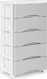 plastična komoda s policami na kolescih s 5 predali ModernHome, siva/bela