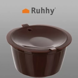 Večkratno uporabne kapsule RUHHY so izdelane iz trpežne plastike, primerne za stik z živili, dopolnjene s silikonskim tesnilom in nerjavnim mikro filtrom. Tako zadržujejo usedline, poudarijo aromo in zagotavljajo čist napitek brez drobnih delcev. Pokrovček z natančno oblikovano odprtino olajša pretok vode iz kavnega aparata in preprečuje iztekanje mimo kapsule.