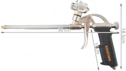 Zanesljiva pištola za PU peno za montaže, tesnjenje in izolacijo. Robusten kovinski dizajn zagotavlja dolgo življenjsko dobo in stabilnost pri delu, medtem ko ergonomski plastični ročaj nudi zanesljiv oprijem in udobje tudi pri daljši uporabi. Z dolgo šobo zlahka dosežete fuge in ozke prostore.