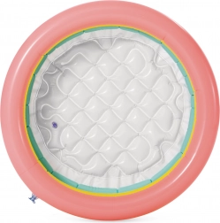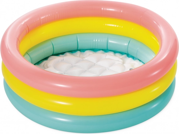 Podarite svojim otrokom zabavo na soncu s tem napihljivim bazenčkom, ki je idealen za zunanje vodne igre. Bazen je izdelan iz odpornega vinila in je opremljen s tremi obroči v veselih barvah. Z mehkim napihljivim dnom je udoben in varen za otroke, ki bodo uživali v igri z vodo.