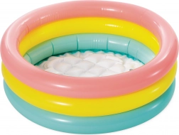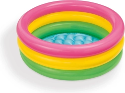 Trije napihljivi obroči v izrazitih odtenkih roza, rumene in zelene dodajo bazenu na atraktivnosti in spodbujajo otroke k igranju.