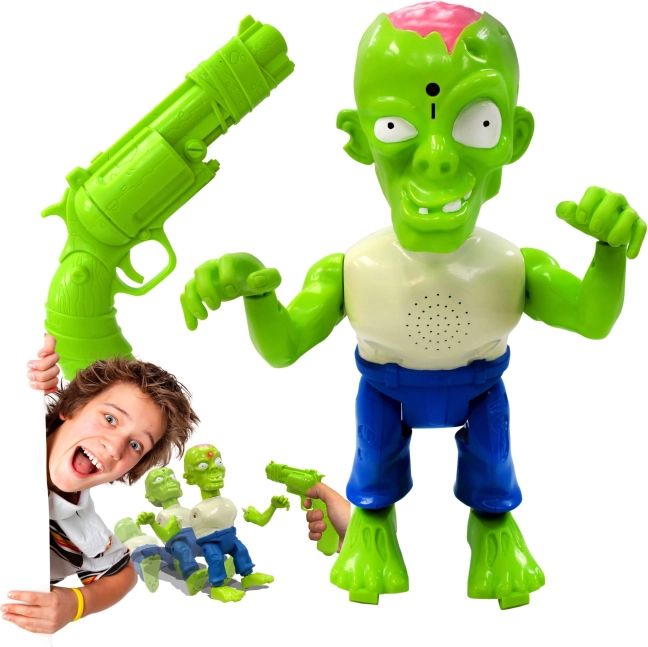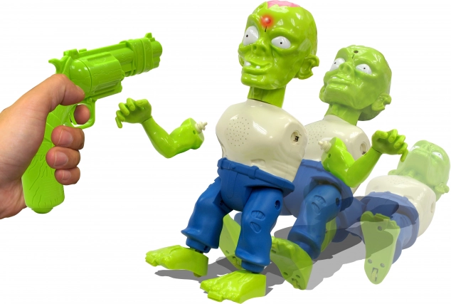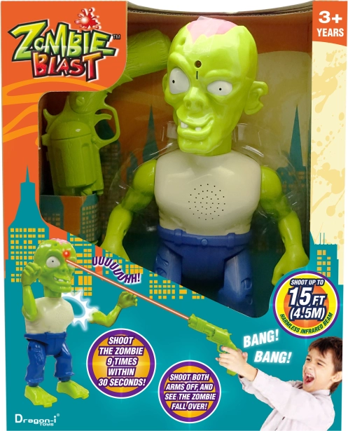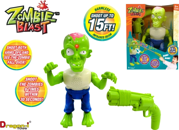 Mladi šerifi lahko v slogu izpopolnijo svoje koordinacijske sposobnosti s to izjemno profesionalno strelsko setom Zombie. Ta domiseln komplet namesto krogel uporablja infrardeče žarke, zato lahko začetniki strelci streljajo na tarče z razdalje do 6 m. Z njim lahko podirajo zombije, in ko zadenejo svojo tarčo, zaslišijo značilno stokanje zombija, medtem ko odpadajo deli telesa. To je odličen način, kako ne le spodbuditi domišljijo in podpreti igro, temveč tudi izboljšati usklajenost rok in oči, zahvaljujoč varnemu infrardečemu sledenju tarči pa je primeren tudi za uporabo v notranjih prostorih