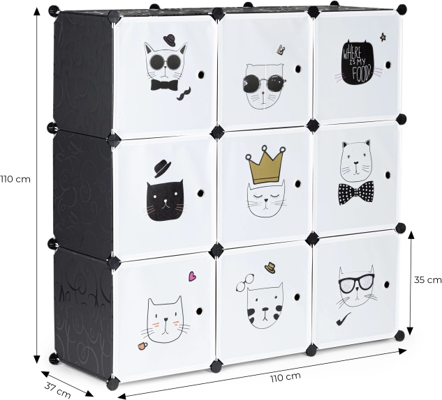 otroška modularna omarica z 9 kubusi s mačjimi motivi ModernHome