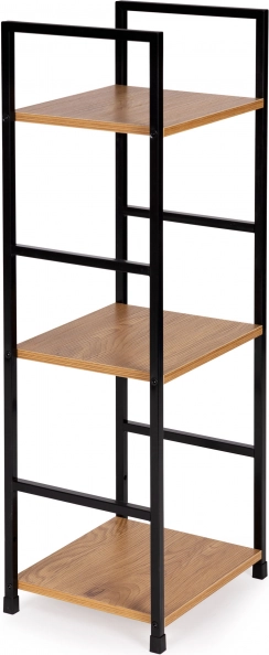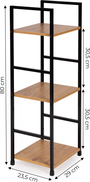 Stilska knjižna omara v industrijskem slogu združuje črn kovinski okvir in police iz MDF v lesnem dekorju. Ponuja 3 praktične police, stabilno konstrukcijo in univerzalno uporabo v dnevni sobi, spalnici, predsobi in kopalnici. Zaradi kompaktnih mer je primerna tudi za manjše prostore, enostavna za sestavo in ne opraska tal zahvaljujoč zaščitnim zaključkom.