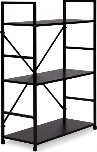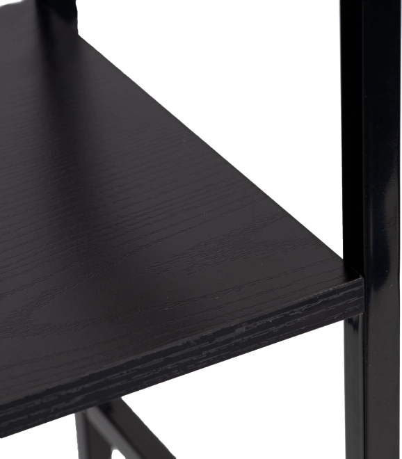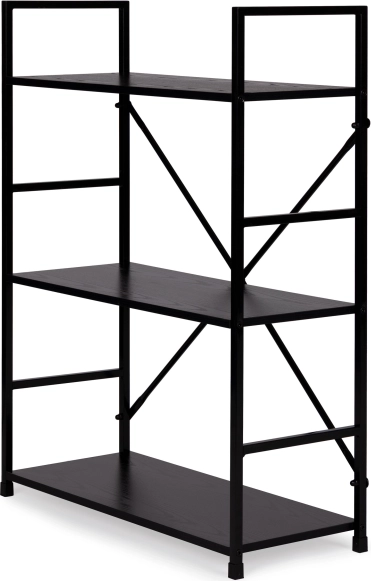 Knjižna omara LOFT združuje minimalističen dizajn in odporne materiale. Tri prostorne police iz MDF z lesnim dekorjem dopolnjuje čvrsta kovinska konstrukcija s križnim ojačanjem za odlično stabilnost. Zahvaljujoč univerzalni črni izvedbi jo zlahka uskladite z modernimi in industrijskimi interierji.