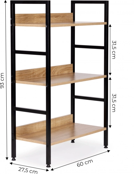 Ta tristopenjska loft polica združuje naraven videz lesa z industrijskim kovinskim stilom za brezčasen videz v vsakem interierju. Plošče iz MDF z lesnim dekorjem v dimenziji 60 × 27,5 cm ponujajo dovolj prostora za knjige, dekoracije in praktične drobnarije, medtem ko kovinski okvir s prašnim lakom zagotavlja stabilnost in dolgo življenjsko dobo.