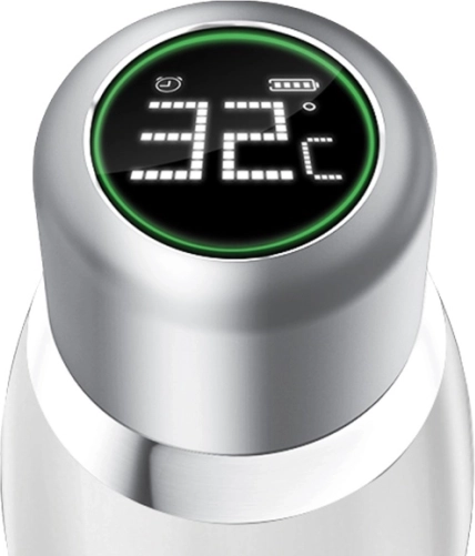 S preprostim dotikom imejte pregled nad temperaturo pijače. Pametna termovka UMAX Smart Bottle U5 v beli barvi združuje kakovostno jekleno izdelavo, napredno toplotno izolacijo in pametne funkcije, vključno z barvnim zaslonom na dotik na pokrovčku. Barvni krog takoj pokaže, ali je pijača hladna, topla ali vroča.