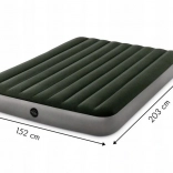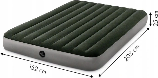 Udobna napihljiva vzmetnica INTEX za dve osebi ponuja mere 203 × 152 × 25 cm in hitro pripravo zahvaljujoč priloženi električni črpalki. Površina iz prijetnega velurja je vodoodporna in mehka na dotik, konstrukcija s tehnologijo Dura-Beam Fiber zagotavlja stabilnost in oporo hrbtenici. Idealna za prenočevanje doma in kampiranje, s hitrim napihovanjem in izpihovanjem preko Boston ventila.