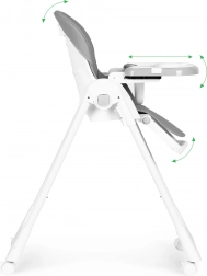 Nastavljiv naslon od navpičnega do počivalnega položaja, nastavljiv podnožnik in pomični pladenj omogočajo popolno prilagoditev stolčka višini in starosti otroka.