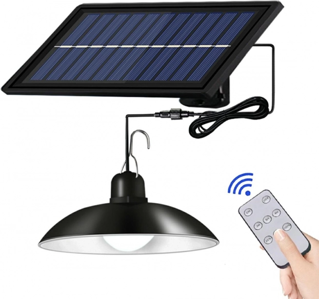 Elegantna viseča vrtna LED svetilka, ki ne potrebuje dodatnega napajanja. Opremljena je z jasnimi in energijsko varčnimi LED-diodami, napajanimi z vgrajeno baterijo in solarnim panelom. Ima IR daljinski upravljalnik za udobno uporabo.