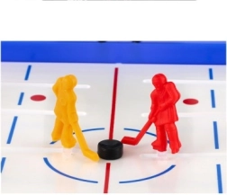 Komplet vsebuje vse, kar potrebujete za igro: igrišče, dva vratarja, dva gola, dva paka in deset igralcev. Zahvaljujoč kompaktnim dimenzijam 53 × 37,5 × 7 cm se zlahka prilega na običajno mizo in je hitro pripravljen za igro. Primerno za otroke od 3 let naprej in za odrasle, ki cenijo preprosta pravila in dinamično igranje.
