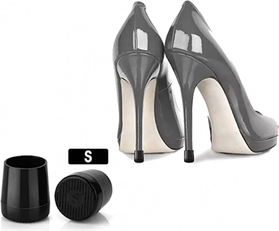 Par zaščitnih nastavkov za visoke pete. Učinkovito ščitijo igličaste pete pred poškodbo in obrabo. Zmanjšujejo značilen zvok pokanja in tveganje zdrsa. Ščitijo tla in površine pred praskami.