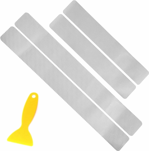 Set štirih zaščitnih nalepk za pragove vrat ščiti lak vozila pred praskami in poškodbami. Enostavna namestitev in prikrivanje že obstoječih prask z videzom karbonske folije.