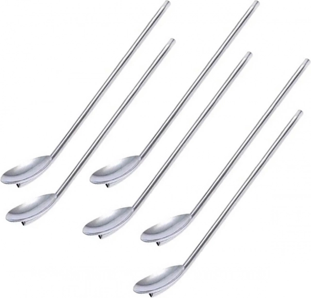 Komplet 6 elegantnih jeklenih slamic/žličk za večkratno uporabo. Vsaka slamica se konča z žličko, zato je odlična tudi za kavo in sladice. Dodajo popoln videz vsaki, tudi najbolj zahtevni zabavi. Izdelane so iz nerjavnega jekla, ki zagotavlja dolgotrajno in brezskrbno uporabo. Ne spreminjajo okusa niti vonja napitkov/sladic.
