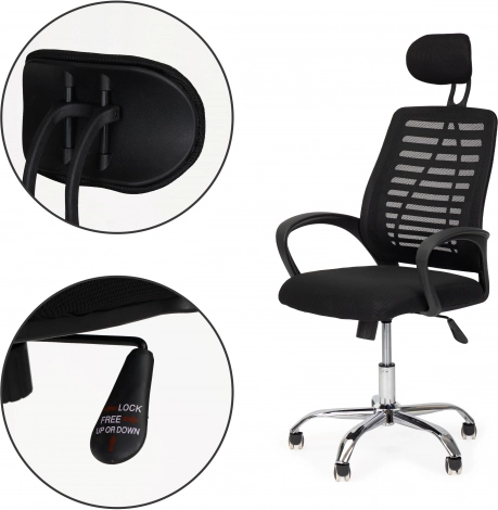 Pisarnaški stol z vzglavnikom in funkcijo gugalnika ModernHome