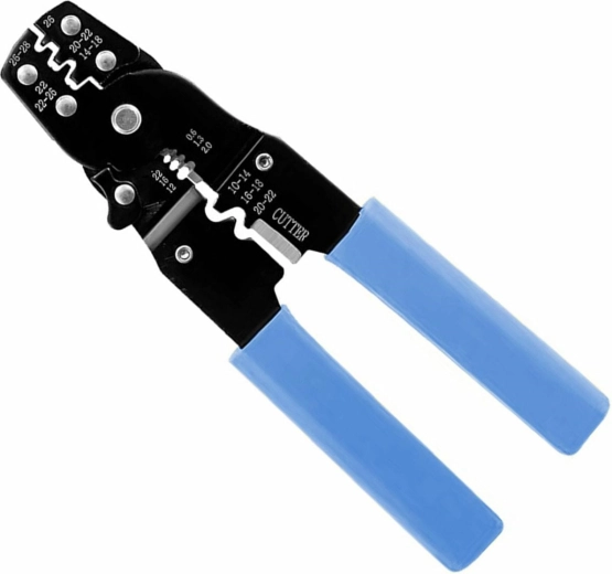 - Orodje za odstranjevanje izolacije in krimpanje neizoliranih ter izoliranih vtičev in konektorjev.