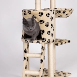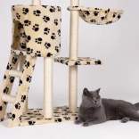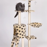 Večnivojsko mačje praskalo z višino 138 cm ponuja 5 nadstropij, 3 razgledne ploščadi, prijetno spalno hiško, udobno visečo hamako in 4 viseče miške za zabavo. Vsi stebri so oviti z naravnim sisalom za varno brušenje krempljev, prevlečeni z mehkim plišem za največje udobje in postavljeni na stabilni osnovi za varno plezanje in igro.