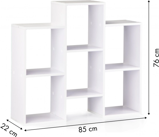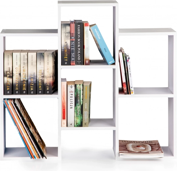 Ustvarite pregledno in estetsko shranjevanje za knjige, revije in dekoracije. Ta bela knjižna omara z odprtimi policami izstopa po čistih linijah in brezčasni geometriji, ki se poda sodobnim interierjem. Zahvaljujoč vrtljivi konstrukciji lahko regal prilagodite prostoru in spreminjate njegovo orientacijo po potrebi.