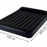 Dvoslojna napihljiva blazina INTEX z merami 203 × 152 × 25 cm ponuja udobno spanje za 2 osebi doma ali na poti. Izdelana je iz trpežnega PVC-ja, površino pa tvori prijeten vodoodporen velur. Z vgrajeno električno črpalko jo napihnete v približno 250 sekundah. Stabilna konstrukcija s tehnologijo Dura-Beam Fiber zagotavlja odlično oporo hrbtenici, medtem ko integriran vzglavnik dodaja dodatno udobje. Praktičen ventil omogoča hitro izpraznitev zraka in enostavno shranjevanje.