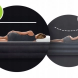 Patentirana tehnologija Dura-Beam Fiber uporablja tisoče čvrstih vlaken, ki razporejajo pritisk telesa in ohranjajo blazino stabilno vso noč. Tako podpira zdravo lego hrbtenice in kakovosten spanec brez udiranja. Vgrajena električna črpalka (220–240 V) napihne ležišče v približno 250 s, Boston ventil pa poskrbi za hitro izpustitev zraka in enostavno pospravljanje.