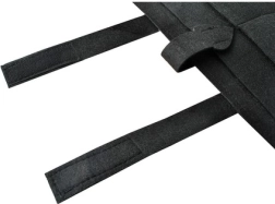 Organizator je izdelan iz filca, ki zagotavlja njegovo lahkotnost in enostavno rokovanje. Namestitev organizatorja je hitra in intuitivna: zgornji del se pritrdi na spodnji del naslonjala za glavo s pomočjo trakov s kavljem in zanko, spodnji del pa se pritrdi s kovinskimi kavlji na sedež.