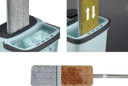 Primeren za čiščenje ploščic, marmorja, keramike, lesa in drugih materialov, ta mop omogoča enostavno izpiranje, ožemanje in pranje v enem koraku.