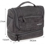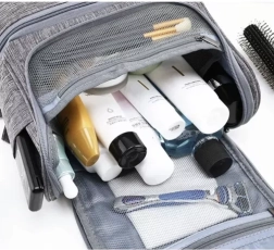 Ta prostorna kozmetična torbica je zasnovana za shranjevanje in organizacijo vseh pomembnih osebnih potrebščin, ki jih potrebujete na poti. Je vodoodporna in zahvaljujoč kljukici jo zlahka obesite na primerno mesto.