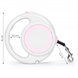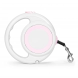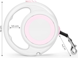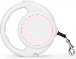 Povodec je izdelan iz vzdržljivih materialov in opremljen z močnim, proti koroziji odpornim 360° vrtljivim karabinom, ki preprečuje zvijanje traku in zagotavlja varno pripenjanje na ovratnico ali oprsnico. Elegantna kompaktna zasnova je enostavna za prenašanje in nudi zanesljivo funkcionalnost.