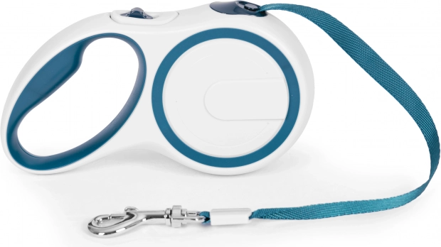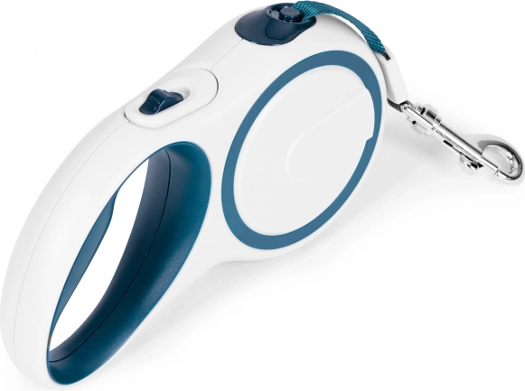 Dizajn v belo-modri barvni kombinaciji deluje čisto in moderno ter je enostaven za vzdrževanje. Povodec je odlična izbira za vsakodnevne sprehode po mestu in v parku.