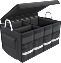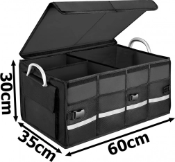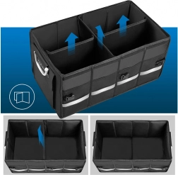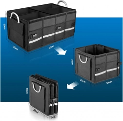 Praktičen organizator za prtljažnik ohranja vaše stvari na mestu ter jih ščiti pred neredom in vlago. Pokrov z zapiranjem preprečuje razsip vsebine med vožnjo, vzdržljiva konstrukcija z ojačanim dnom zagotavlja stabilnost, stranski mrežasti žepi in predelki pa pomagajo vse hitro najti. Idealen za vsakodnevno uporabo, izlete in daljše poti.