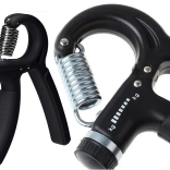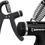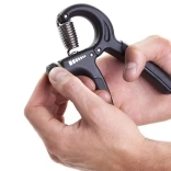 Univerzalni stiskalnik za roke s tekoče nastavljivim uporom 5–60 kg za vadbo doma in v telovadnici. Ergonomski, nedrseči ročaji in kovinska vzmet zagotavljajo stabilno delovanje, krepitev podlakti, dlani in zapestja ter podporo pri rehabilitaciji.