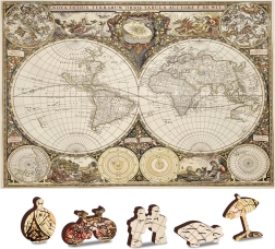 Lesena sestavljanka z motivom antičnega zemljevida bo navdušila ljubitelje izvirnih sestavljank in zbiratelje nenavadnih daril. Zahvaljujoč obojestranski izvedbi 2v1 lahko sestavljate po sliki na sprednji strani ali pa preizkusite zahtevnejše sestavljanje hrbtne strani s ponavljajočim se vzorcem zgolj po oblikah koščkov.