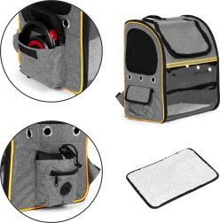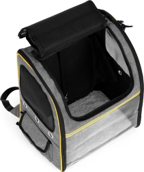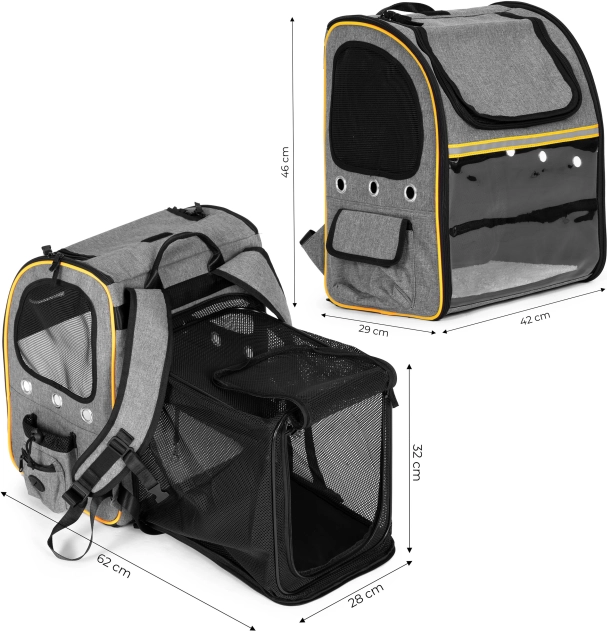 Uživajte v potovanjih s svojim ljubljenčkom varno in udobno. Ta prostoren nahrbtnik združuje čvrsto in varno konstrukcijo z domiselnimi podrobnostmi za vaše udobje in dobro počutje živali. Prozorna sprednja stena vašemu spremljevalcu omogoča opazovanje okolice, medtem ko mrežasti paneli in prezračevalne odprtine zagotavljajo stalen dotok svežega zraka.