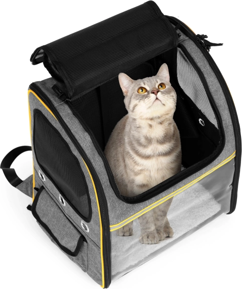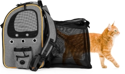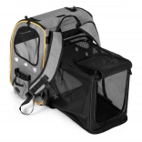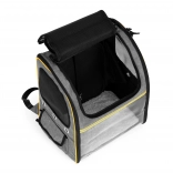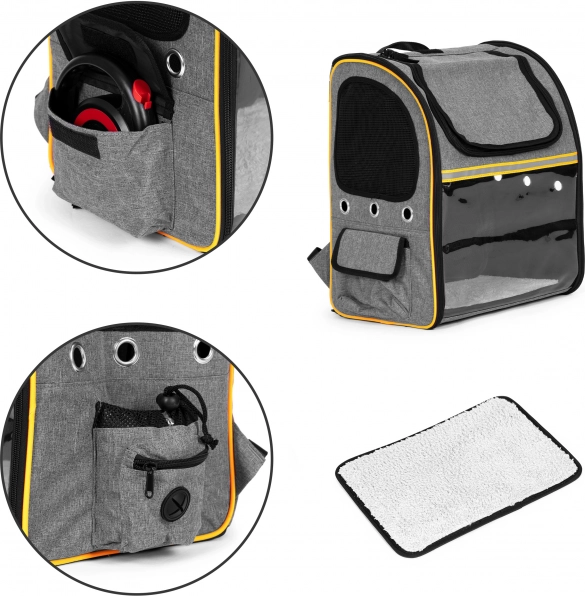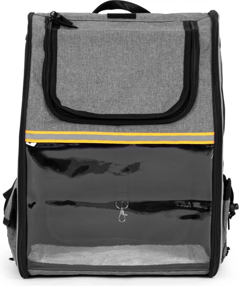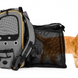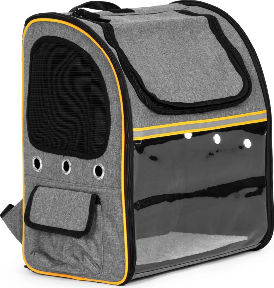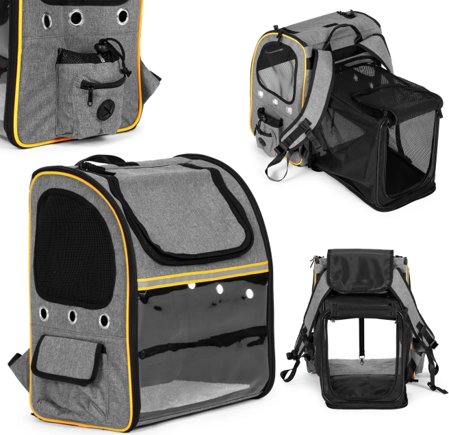Prozorno “steklo” žival pomirja z pogledom navzven, medtem ko mrežasti paneli in prezračevalne odprtine zagotavljajo stalen dotok zraka in udobje na poti.