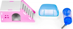 Vključeni so hiška, posodica, napajalnik, dva drsnika, štiri nivoji in tekalno kolo – vse, kar vaš ljubljenček potrebuje za udobje, aktivnost in počitek.