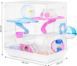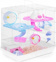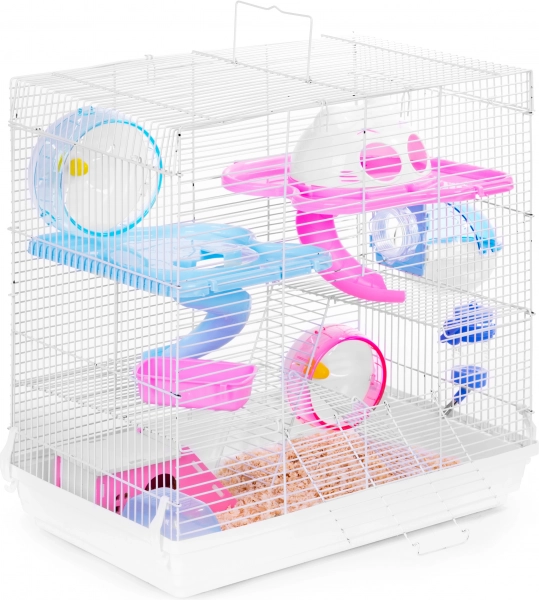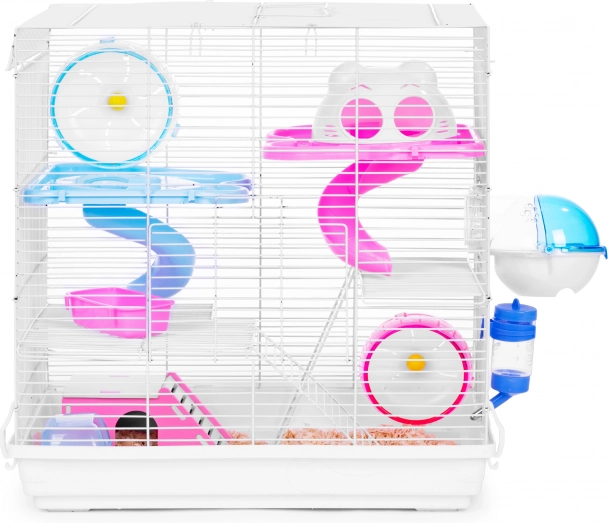 Štiri nadstropja, povezana z dvema drsnikoma, ter vgrajeno tekalno kolo spodbujajo naravno aktivnost in pomagajo vsak dan ohranjati glodavce v odlični kondiciji.