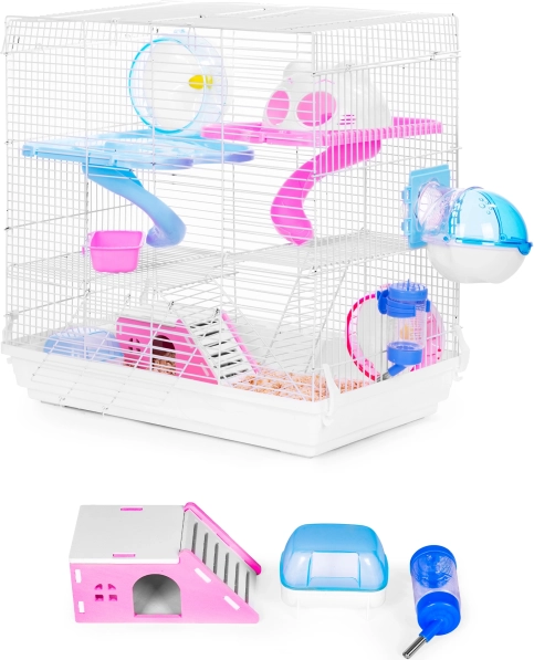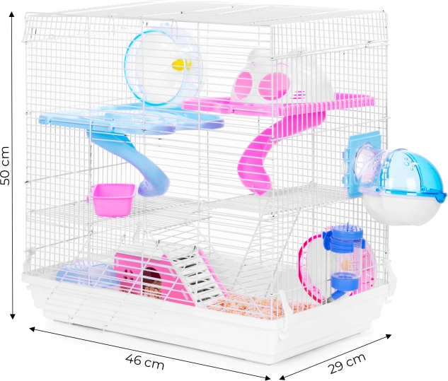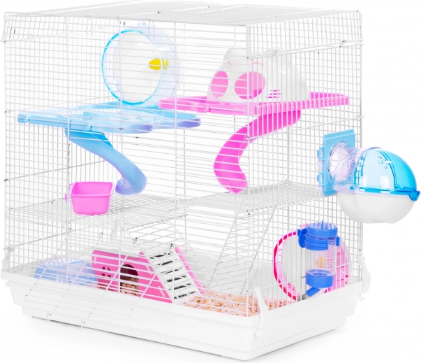 Premišljena kletka PETSI ustvarja idealno okolje za hrčke, podgane in druge majhne glodavce. Več nivojev s povezovalnimi drsniki spodbuja naravno gibanje in raziskovanje, medtem ko hiška nudi miren prostor za počitek. Zaradi kakovostnih materialov je kletka trpežna, stabilna in hkrati varna za živali.