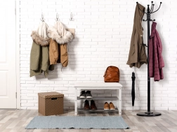 Pet zgornjih krakov z dvojnimi položaji in štiri nižje kljuke nudijo dovolj prostora za plašče, torbe, klobuke in otroške jakne.