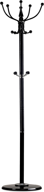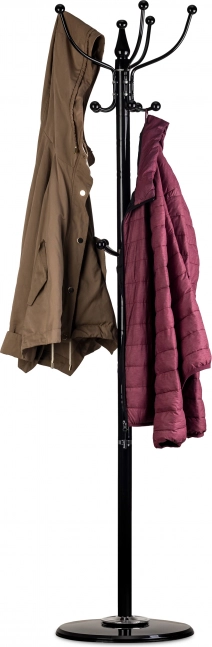 Eleganten samostoječ obešalnik ModernHome združuje stabilno kovinsko konstrukcijo, kar do 14 kljuk za plašče, torbe in dodatke ter veliko težko osnovo za največjo stabilnost. Zaradi modernega, a brezčasnega dizajna je odlična izbira za predsobo, pisarno ali čakalnico.