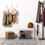 Zahvaljujoč vzdržljivi kovinski konstrukciji in premišljeni razporeditvi kljuk ohranja red v hodniku ali garderobi. Preprosta montaža traja približno 10 minut in takoj dobite praktično in elegantno rešitev za vsakodnevno uporabo.